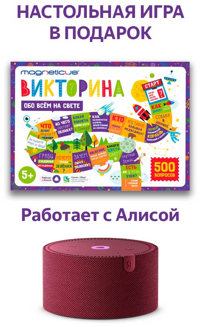 Яндекс Новая Станция Мини с Алисой в комплекте настольная игра-викторина Обо всем на свете
