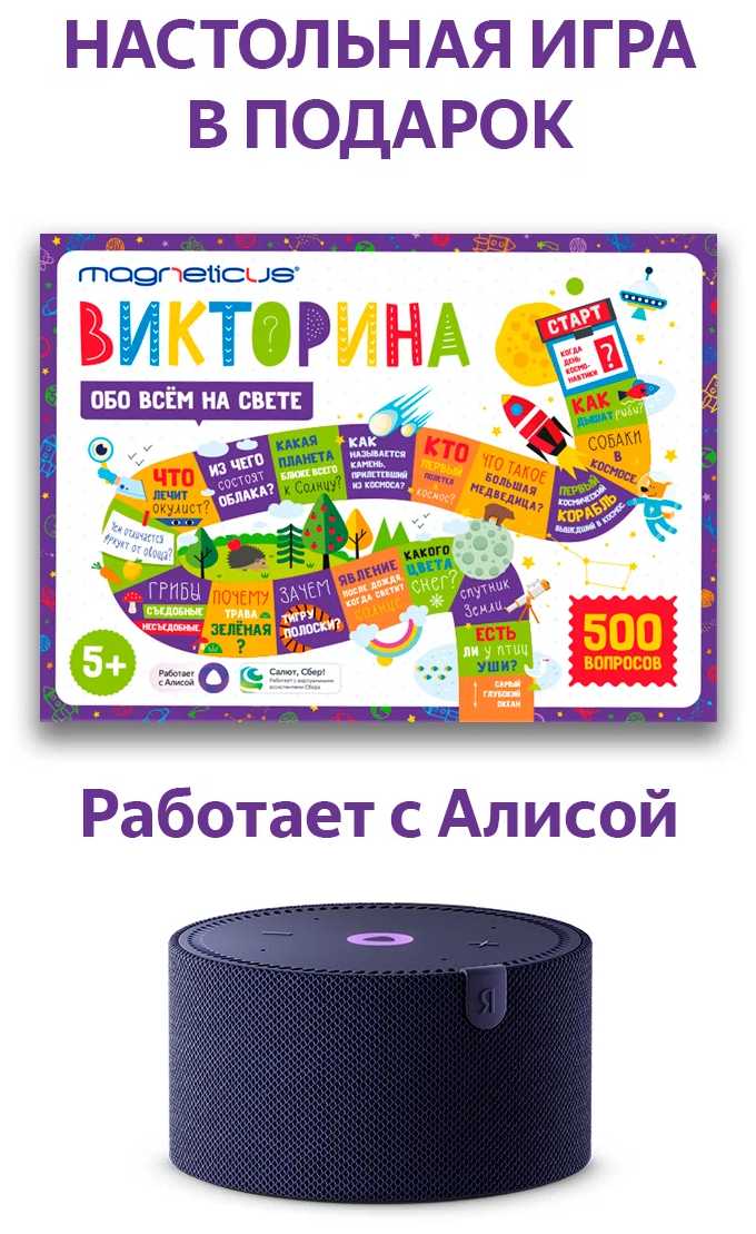 Яндекс Новая Станция Мини с Алисой в комплекте настольная игра-викторина Обо всем на свете