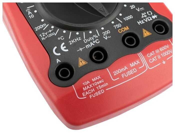 | Функции : | выявление повреждения проводки и соединения, измерение переменного напряжения, измерение постоянного напряжения, измерение работоспособности диодов и транзисторов, измерение силы переменного тока, измерение силы постоянного тока, измерение сопротивления, измерение температуры, измерение частоты, проверка батареек под нагрузкой |