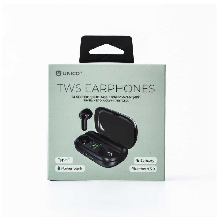 Отзывы о Беспроводные наушники TWS с кейсом с функцией внешнего аккумулятора для подзарядки смартфона / Наушники беспроводные блютуз наушники Unico черные