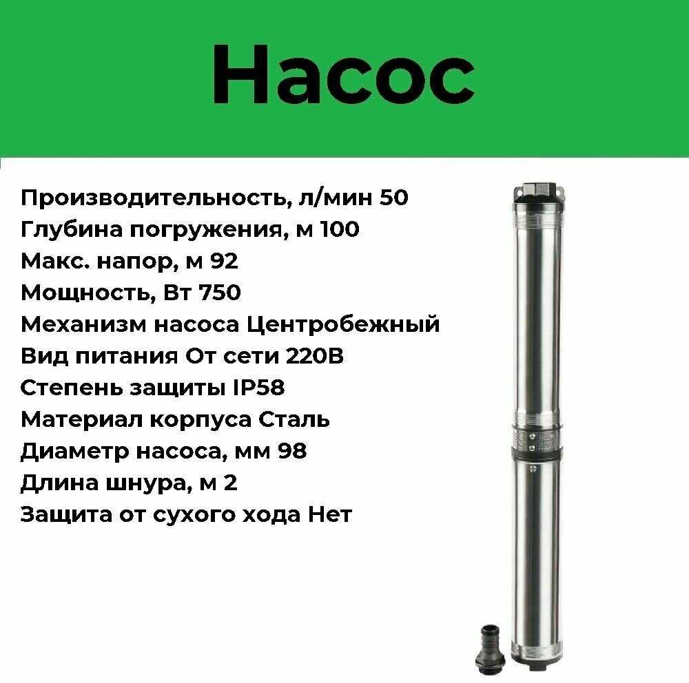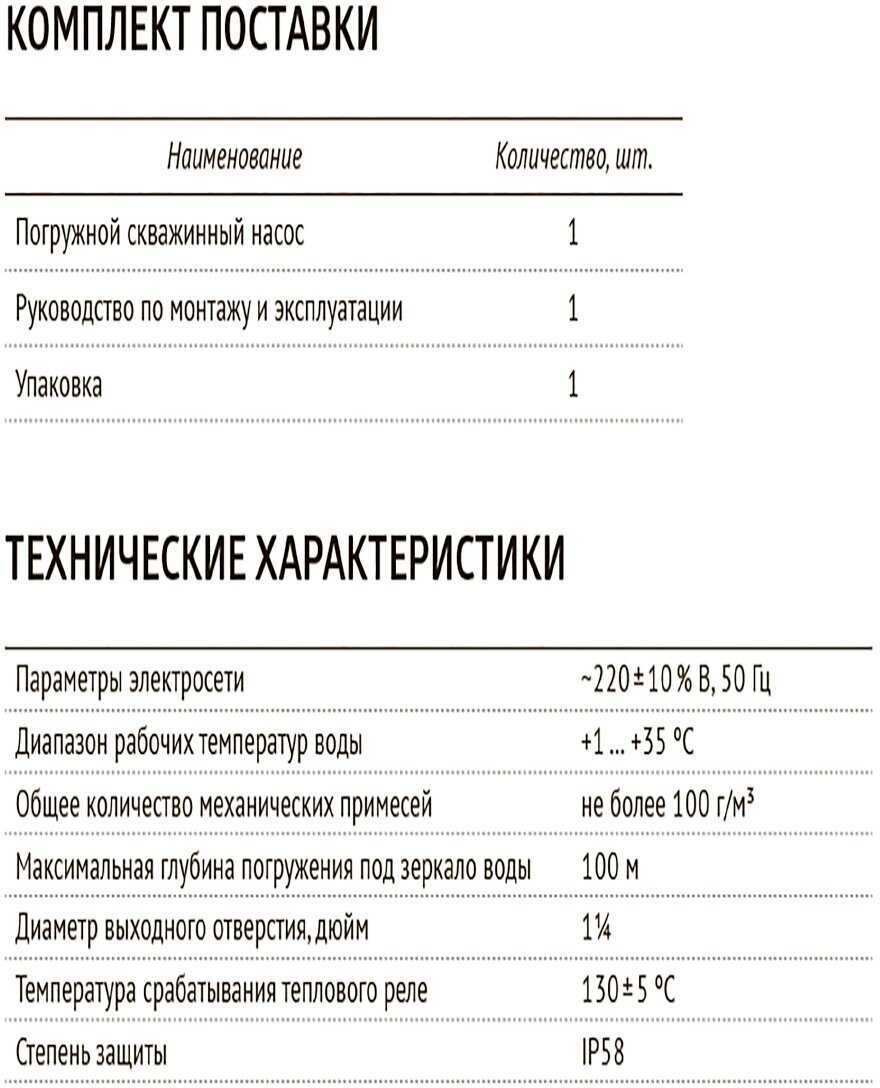 | Дополнительная информация : | общее количество механических примесей - не более 100 г/куб.м, диаметр скважины не менее 98 мм, класс защиты IP58, материал крыльчатки пластик, частота 50 Гц |