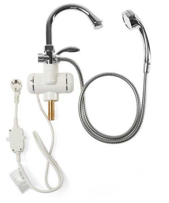 - + Все в комплекте: кран с нагревателем, душ и даже УЗО, легко устанавливается и подключается