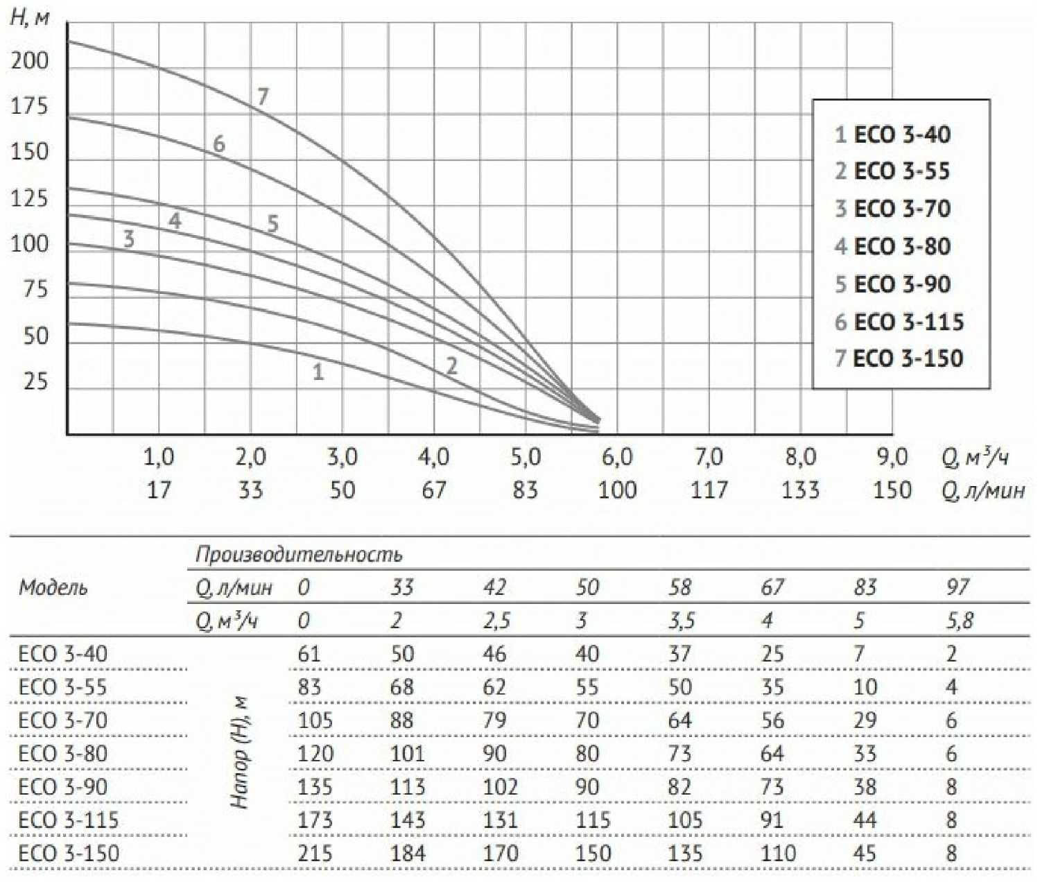 Характеристи UNIPUMP ECO 3-55 (750 Вт)
