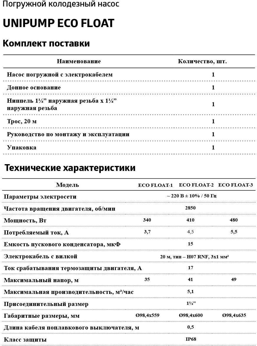 Лучшие цены сегодня на UNIPUMP ECO FLOAT-2