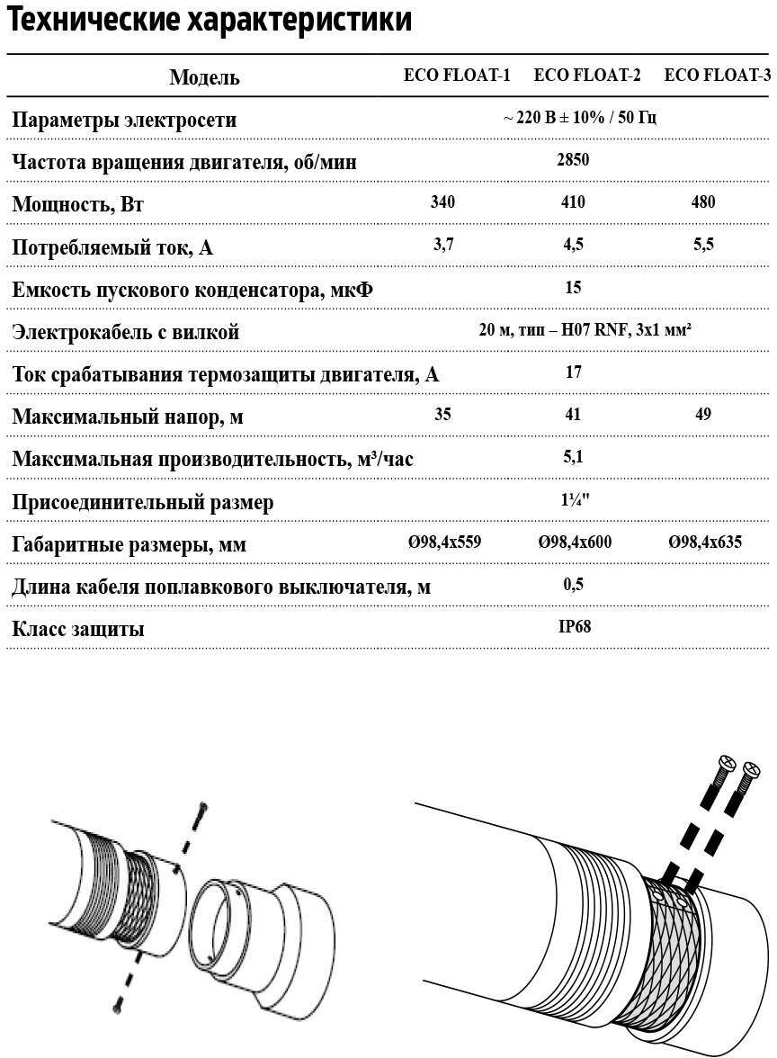 Функции : | встроенный обратный клапан, защита от перегрева, защита от сухого хода, поплавковый выключатель |