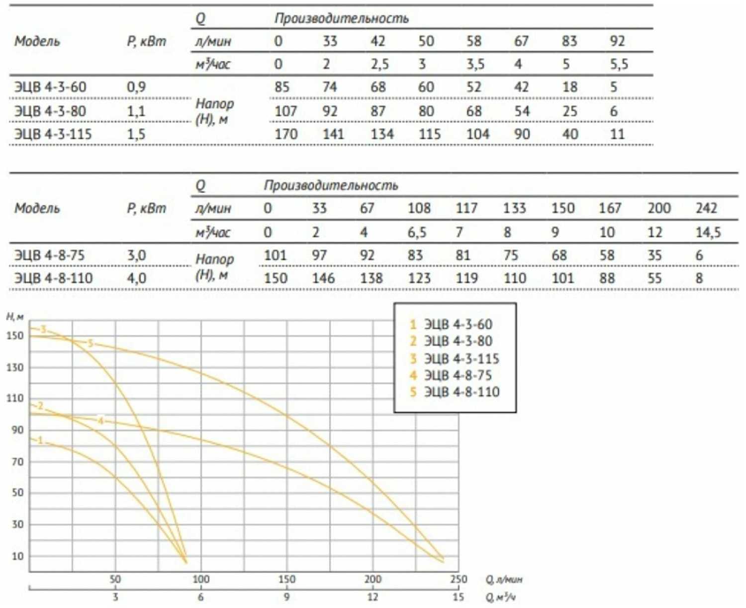 Характеристи UNIPUMP ЭЦВ 4-3-115