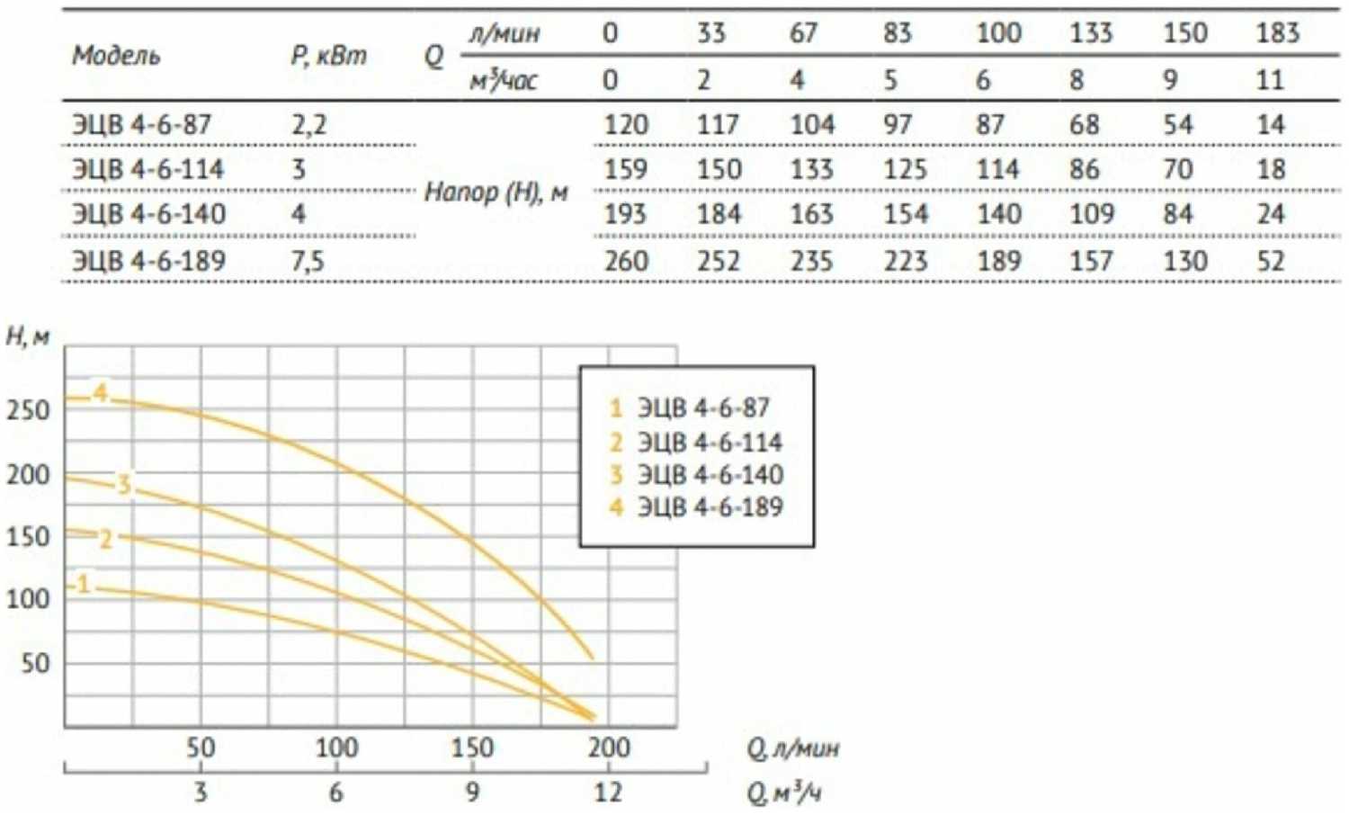 Характеристи UNIPUMP ЭЦВ 4-6-114