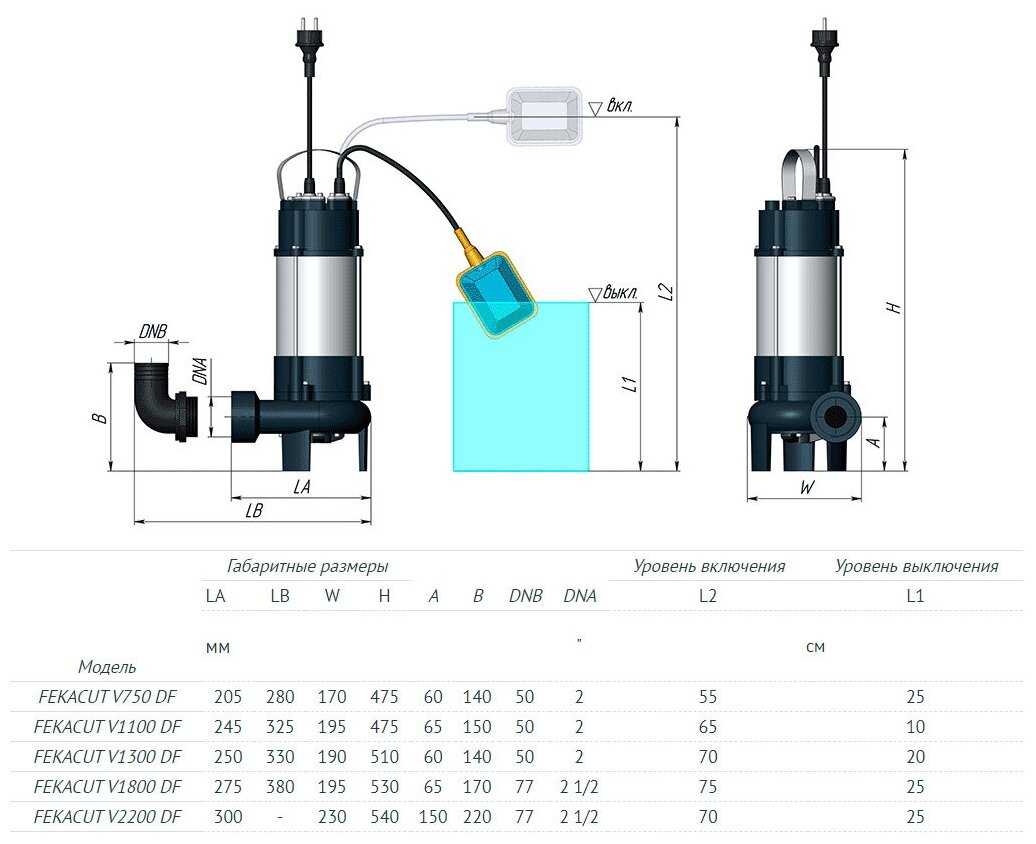 Функции : | защита от перегрева, защита от сухого хода, поплавковый выключатель |