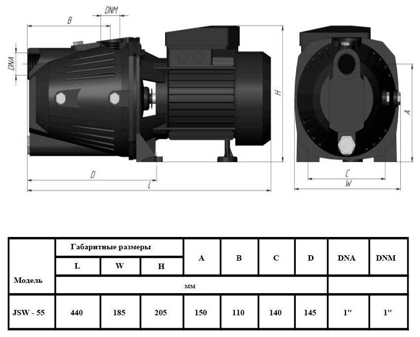 Характеристи UNIPUMP JSW 55 (1000 Вт)