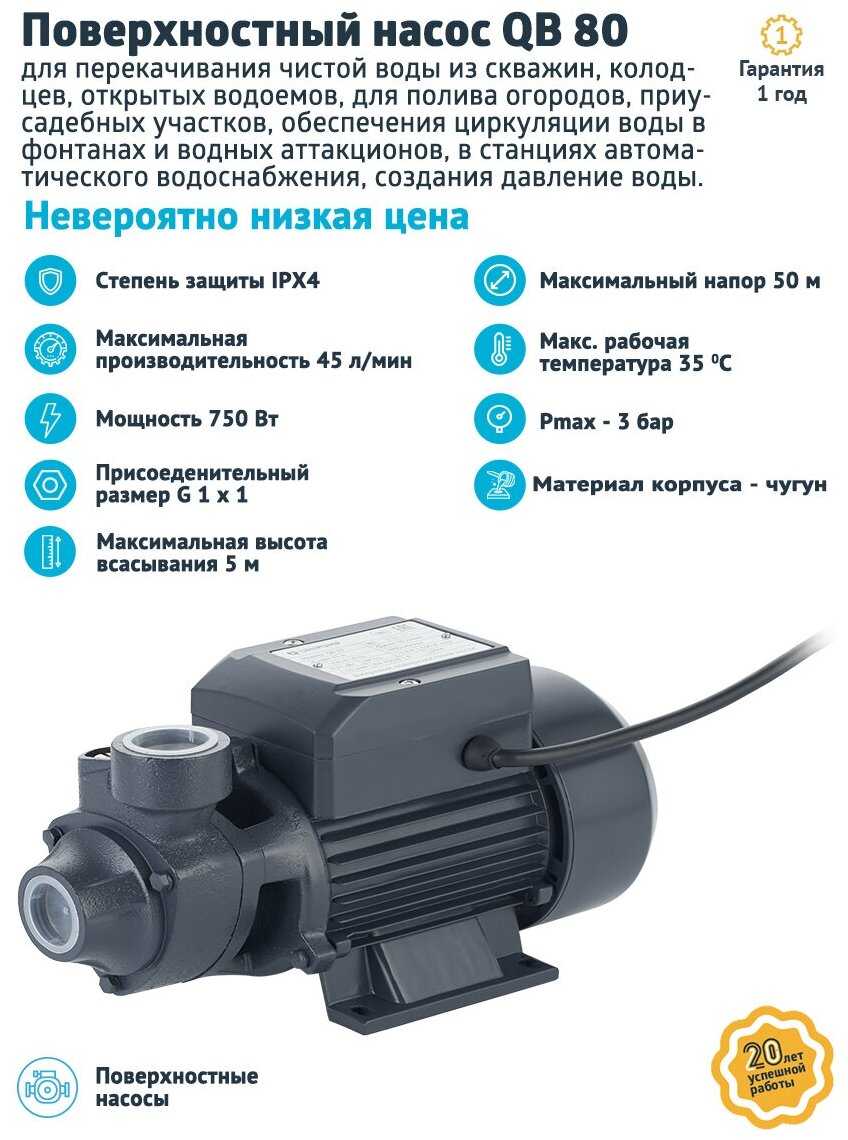 Отзывы о Поверхностный насос UNIPUMP QB 80 (750 Вт)