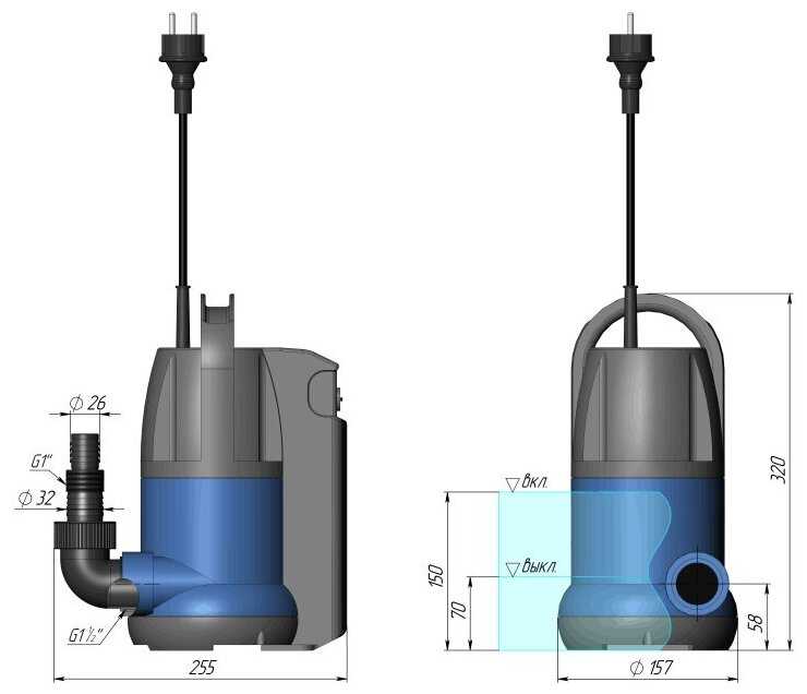 Функции : | защита от сухого хода, поплавковый выключатель |