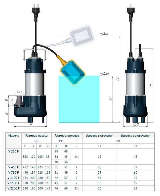 | Функции : | защита от перегрева, защита от сухого хода, поплавковый выключатель |