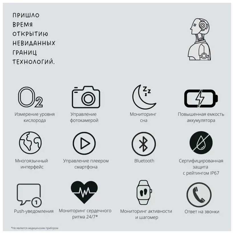 Мониторинг : | калорий, пульса, сна, уровня кислорода в крови, физической активности |