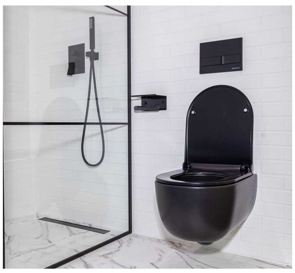 6.5/10 балловBERGES WASSERHAUS Унитаз подвесной Berges Ego Black безободковый, черный матовый, сиденье дюропласт, микролифт, быстросъемное