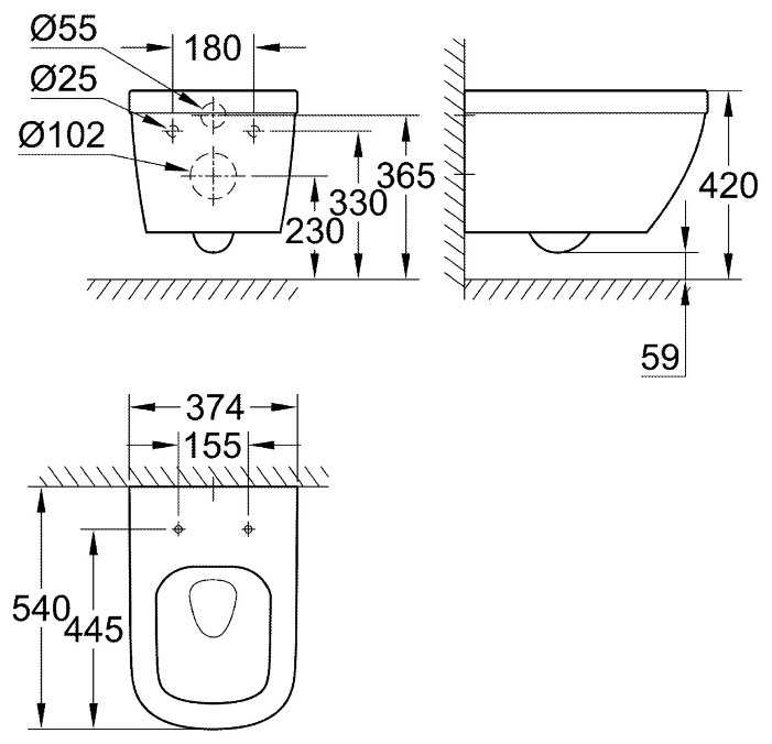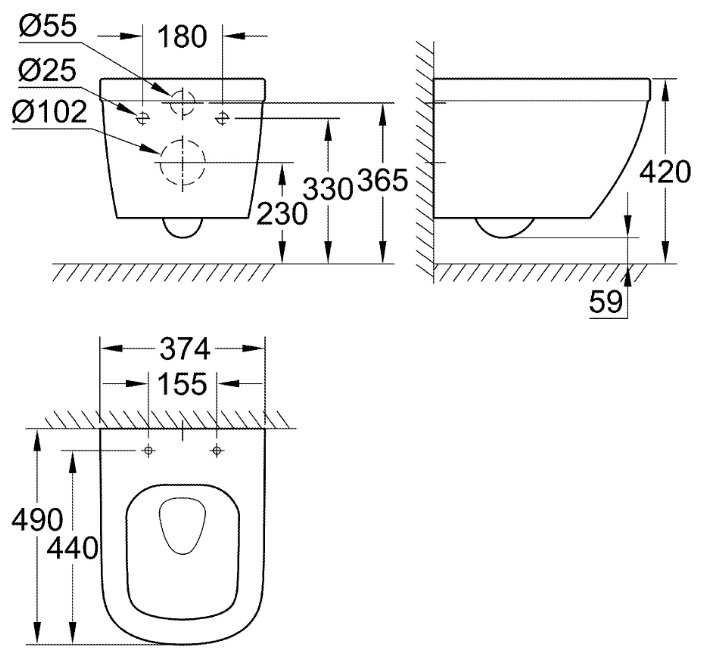 Grohe Bau Ceramic 39346000 с вертикальным выпуском