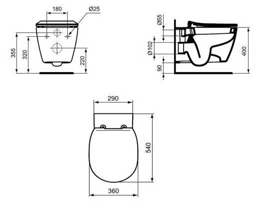Ideal STANDARD Exacto Rimless R002601 микролифт с горизонтальным выпуском