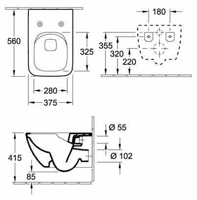 Villeroy & Boch Avento 5656RS01 с горизонтальным выпуском