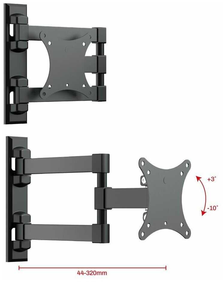 Отзывы о Кронштейн для телевизора на стену наклонно-поворотный с диагональю 13"-27" UniTeki FM1617, черный