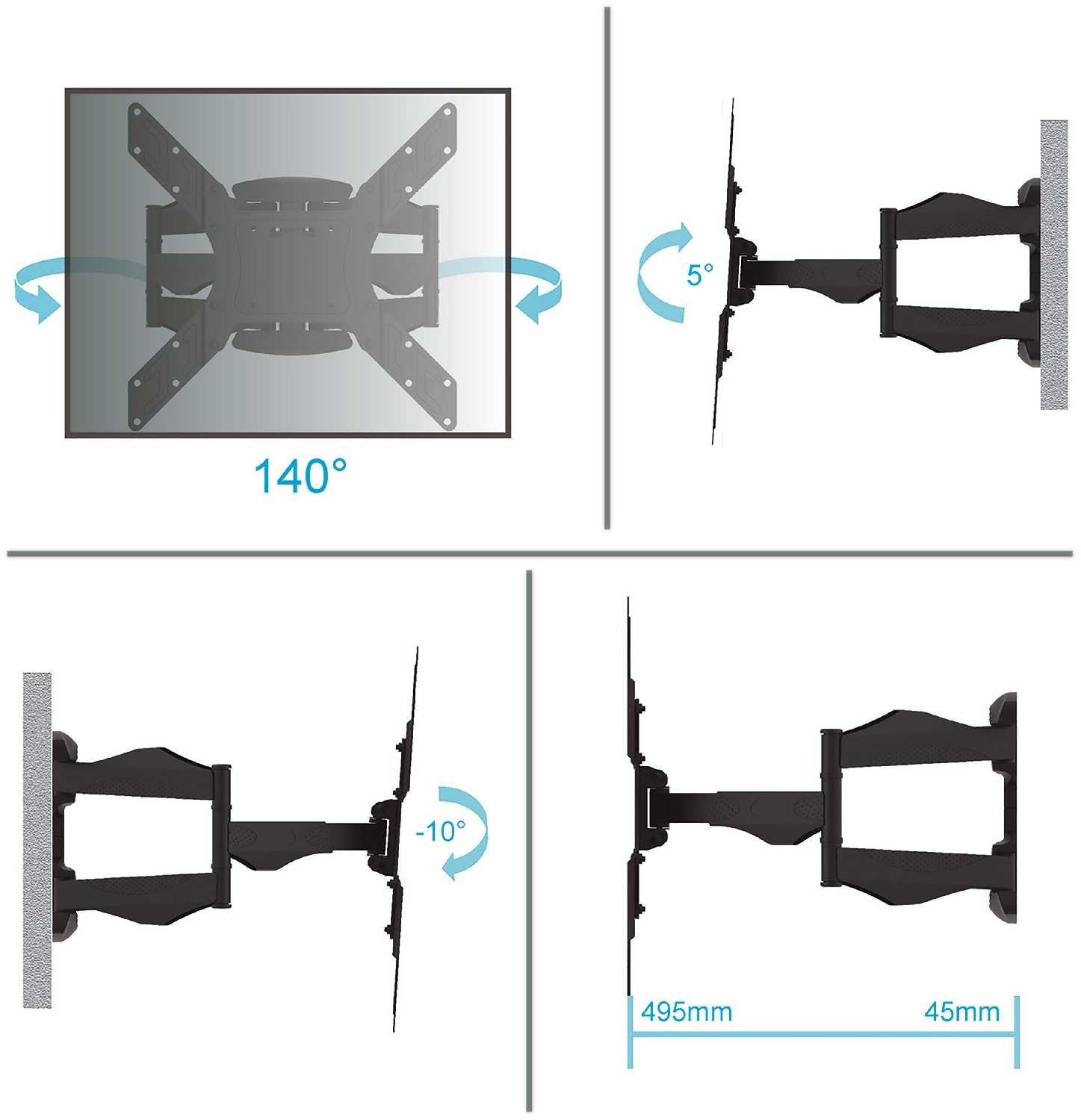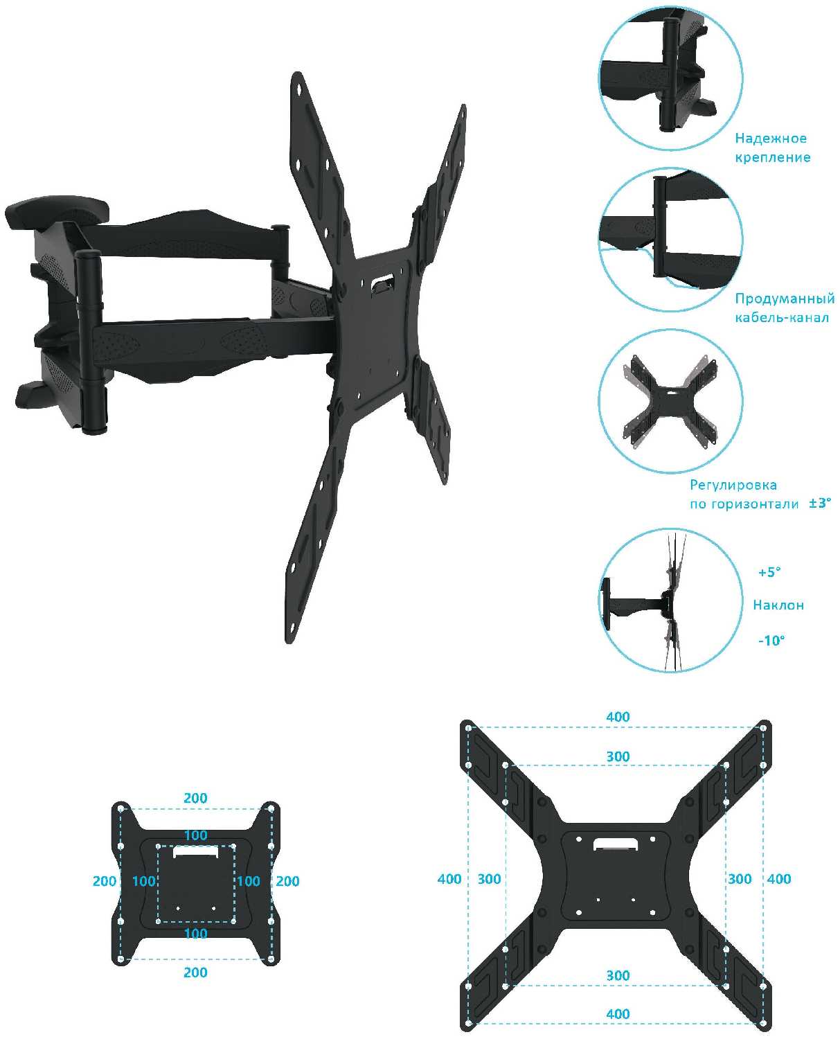 Отзывы о Кронштейн для телевизора на стену наклонно-поворотный с диагональю 22"-65" UniTeki FM1769, черный