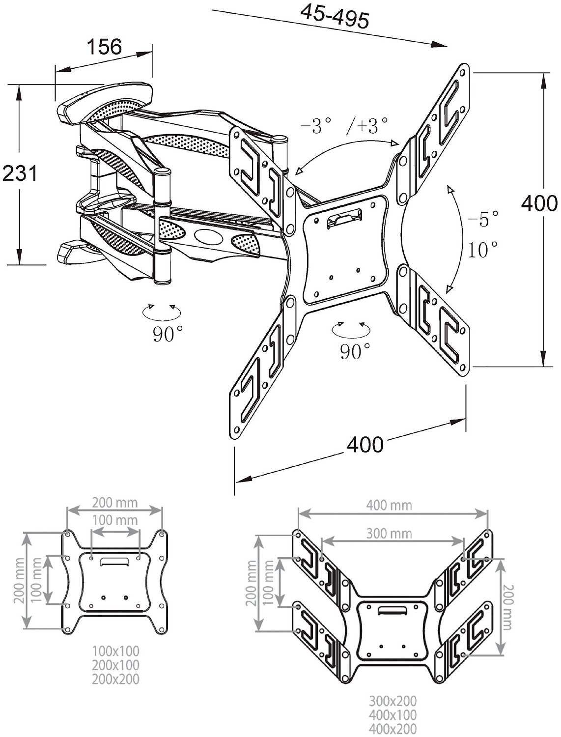 Стандарт Vesa : | 100x100 мм, 200x100 мм, 300x200 мм, 200x200 мм, 300x300 мм, 400x200 мм, 400x300 мм, 400x400 мм |
