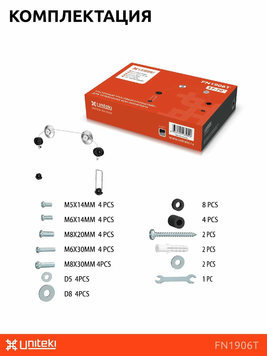 Характеристи Uniteki Кронштейн для телевизора тросовый на стену (FN1906T)
