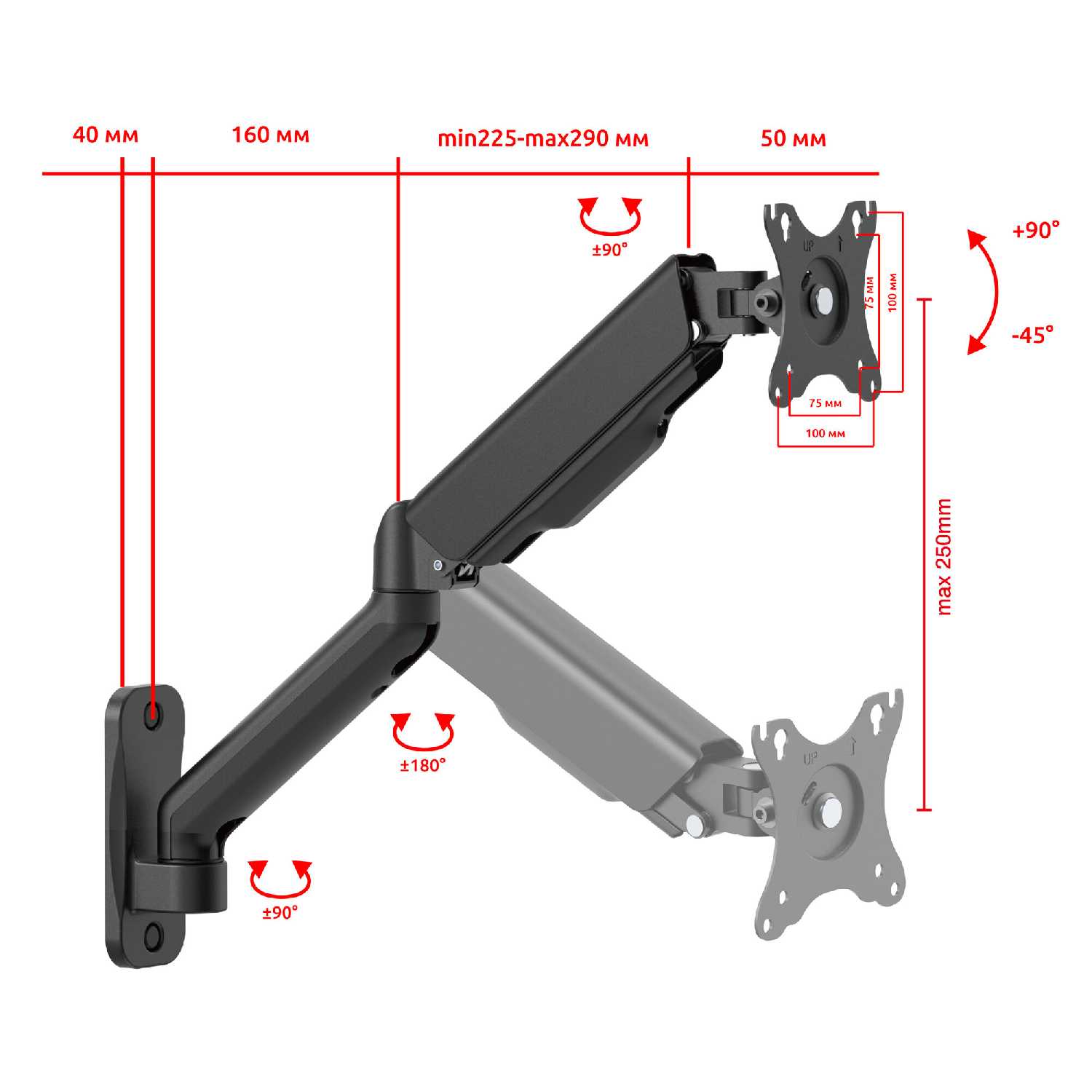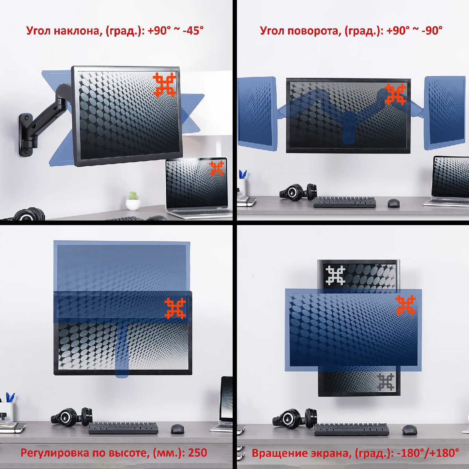 Регулировка : | наклон, наклон и поворот, отступ от стены, по высоте, поворот, фиксированный |