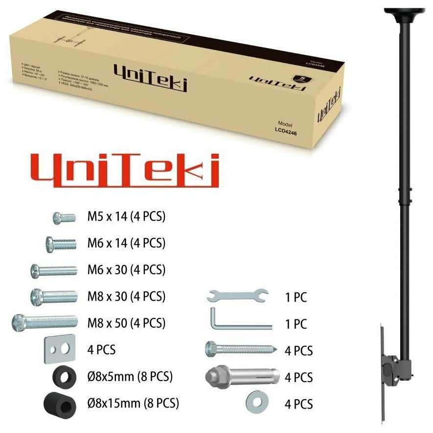 Отзывы о Кронштейн для телевизора потолочный наклонно-поворотный с диагональю 37"-70" UniTeki LCD4246, черный