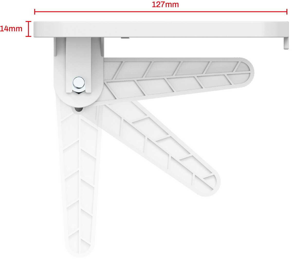 вес Саба (~2 кг) держит нормально, не складывается - - если устанавливает не строго горизонтально, то Саб может скользить. впрочем, эта полочка предназначена для лёгких и "не вибрирующих" предметов (роутер, пульт, ресивер DTV и т.д.