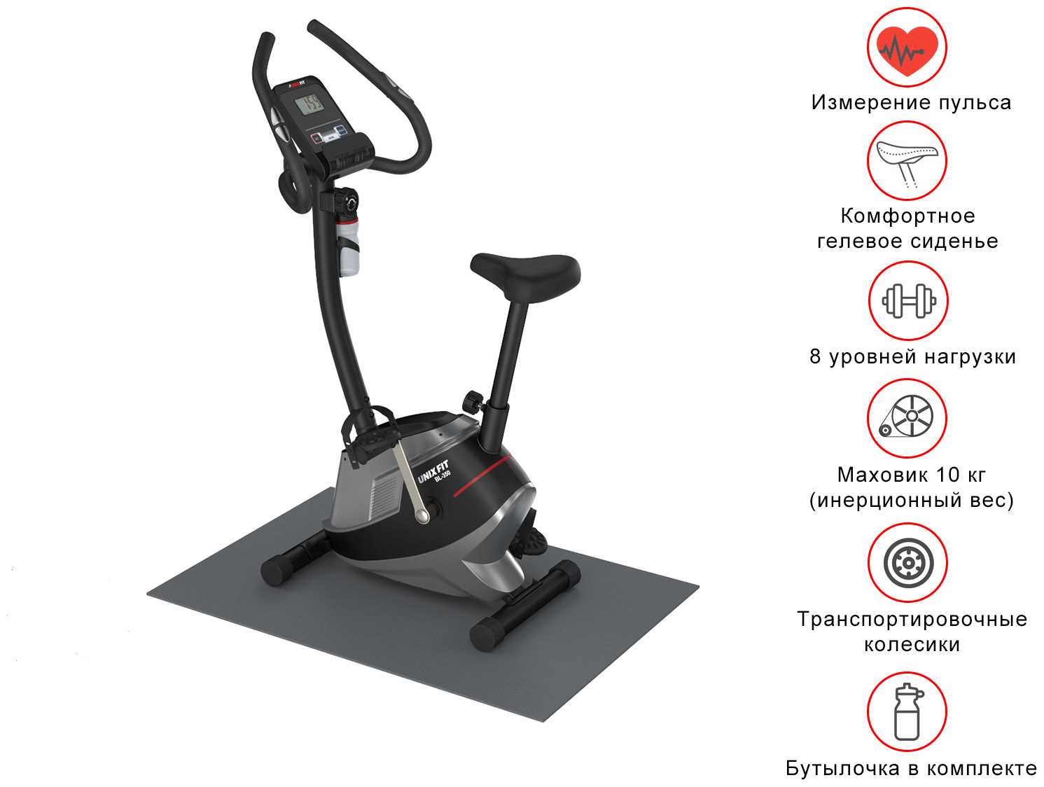 тип кардиодатчика: встроенный, крепление кардиодатчика: на руле комплектация: Велотренажер бутылка для воды сумка для телефона с креплением на руку и защитный коврик