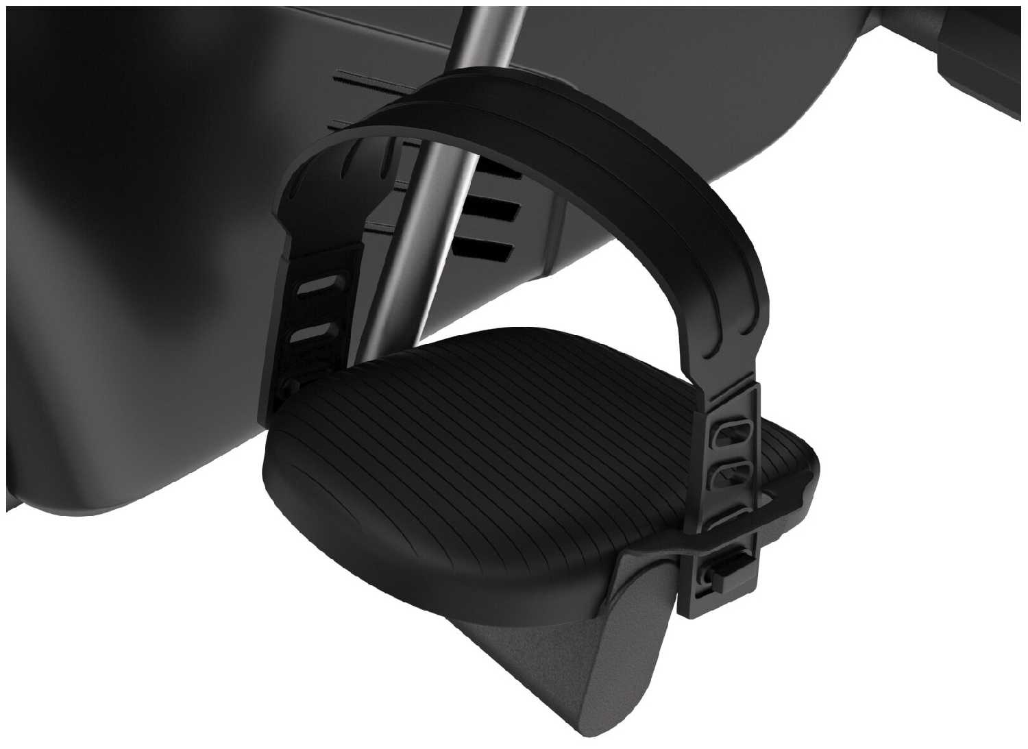 Устройство эргономичное, со складной конструкцией, за счет чего при хранении не занимает много места. Информативный дисплей предназначен для отображения важных параметров: скорости движения, сожженных калорий и пройденной дистанции. Отслеживать пульс в процессе тренировки позволяют особые датчики, расположенные на боковых поручнях. Широкие педали с ремешками предотвращают случайное соскальзывание ног.
