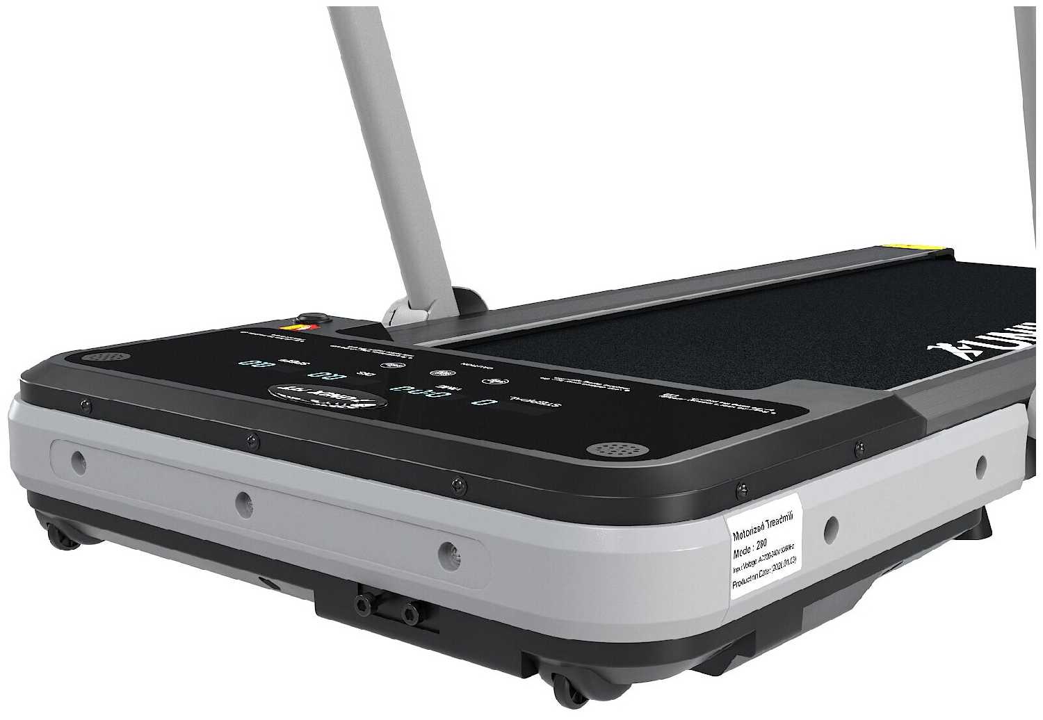 В комплекте руководство по эксплуатации так себе. Непонятно, сколько смазки нужно. Пульт инфракрасный; нужно очень точно прицелиться в приёмник, чтобы работал. Зато прекрасно мешает телевизору - видимо, на одной частоте. Так что не получится бежать и смотреть ТВ. Да и всё равно регулировка +-0,2 км/ч очень неудобная. В сложенном состоянии высота дорожки 14 см. Но хранить под кроватью не получится. Как её закатить туда, если у неё надёжные не скользящие вставки? Чтобы её катить на колёсиках нужно поднять на 30°. Так что она всегда будет мешаться в комнате, вертикально ставить нельзя. Дорожка таки тяжёлая, девушке будет тяжело её передвигать. При включении очень громко пищит, как и остальные сигналы. После покупки работало с приложением. Потом перестало соединяться. Затем появилось сообщение, что дорожку нужно проверить на предмет подделки. Скачал доп.приложение, проверил, отправил скрин производителю, что оригинал - тут же заработало. И вот теперь снова не работает, не соединяется с телефоном. А в спец.приложении для проверки "мозгов" говорит, что это уже не оригинал. Вот и всё. А без приложения пользоваться дорожкой ну очень неудобно! Хоть выкидывай. Продавец держит покупателей за простаков, и пишет, что если у вас брак, а вы выбросили коробку, или испачкали, или поцарапали корпус - они не принимают рекламацию. Закон о защите прав потребителей с вами не согласится.