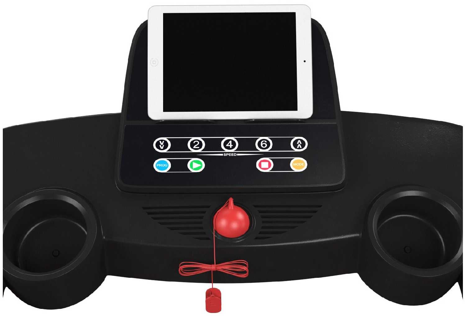 - Подставка для планшета выдерживает устройства до 10" — удобно для синхронизации тренировок с видеоуроками.