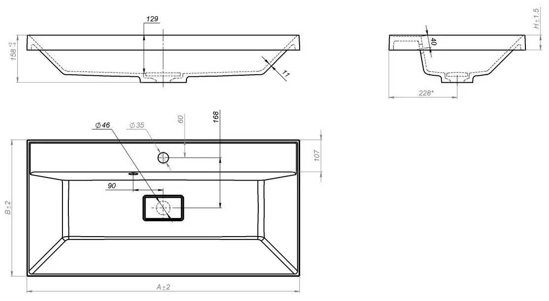 | Расположение размеченного отверстия под смеситель : | в центре |