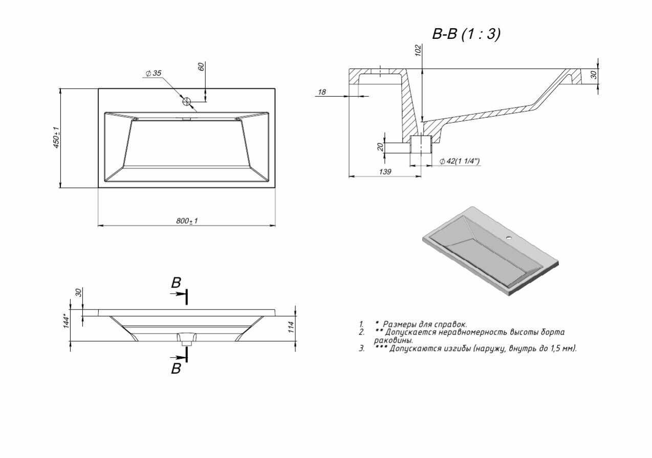 | Расположение размеченного отверстия под смеситель : | в центре |