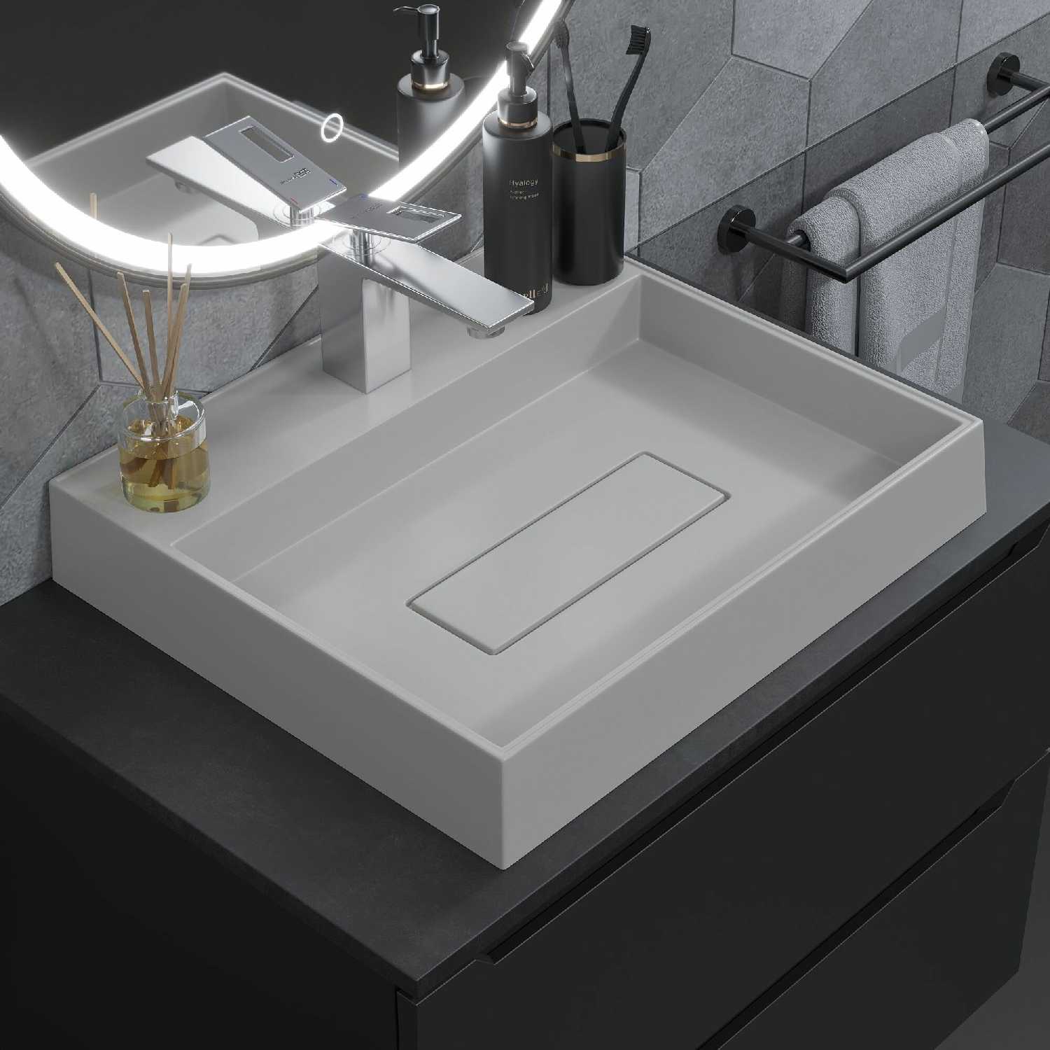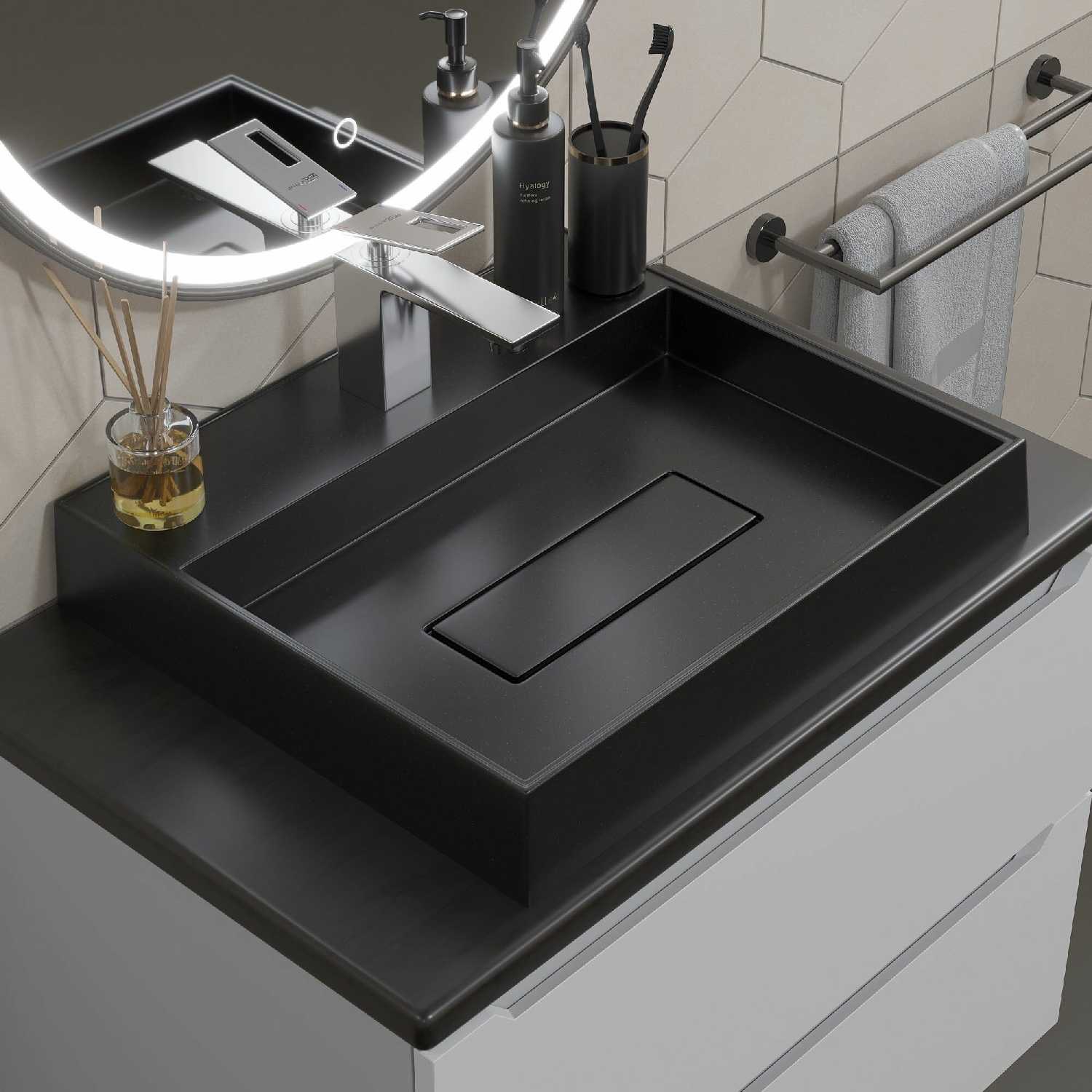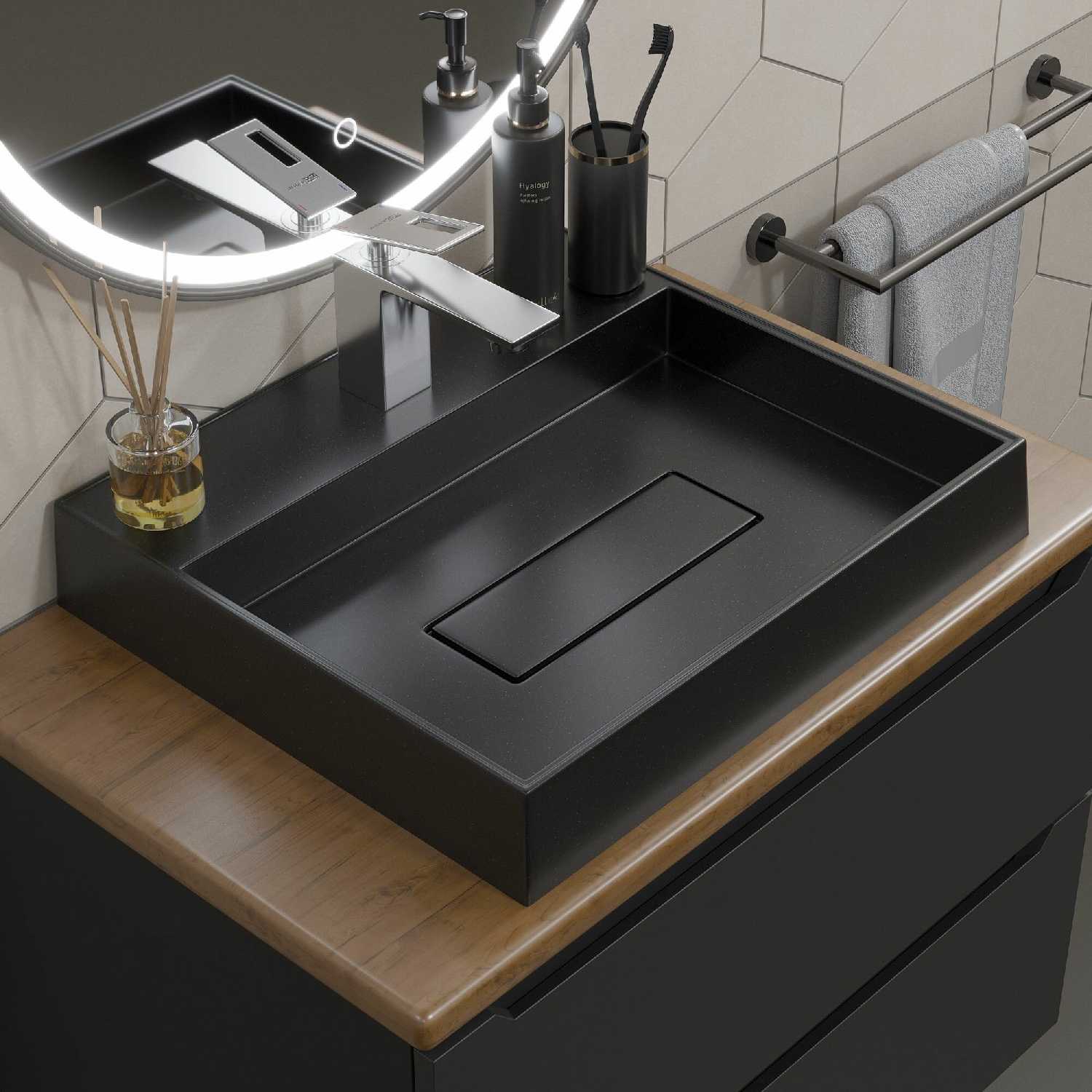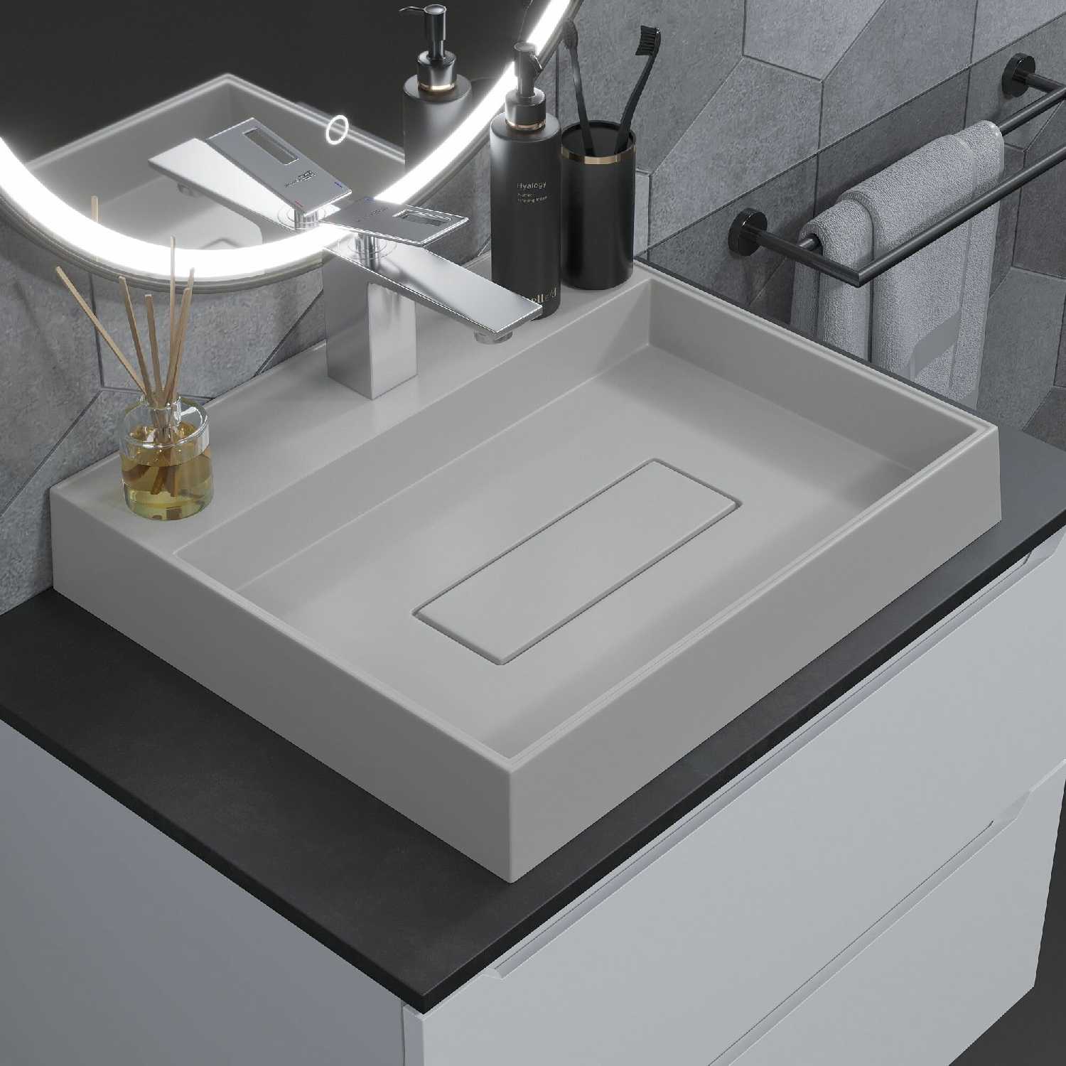 Отличная накладная раковина, легла на тумбу без каких-либо проблем идеально ровно. Казалось, что глубина маловата, но со временем убедились, что более чем достаточная. Легко моется. Приятный цвет.