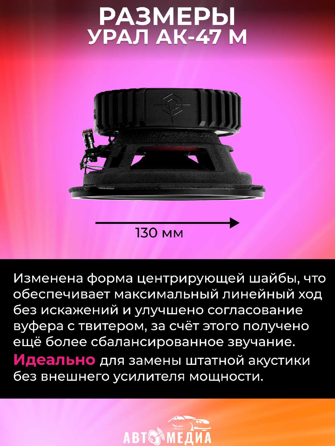 Судя по отзывам, 16-сантиметровые версии (например, AK-74) обеспечивают более мощный бас и громкость даже при одинаковой заявленной мощности. Однако 13 см модели (AK-47) ценятся за баланс между компактностью и качеством звука, особенно при использовании с сабвуфером. -