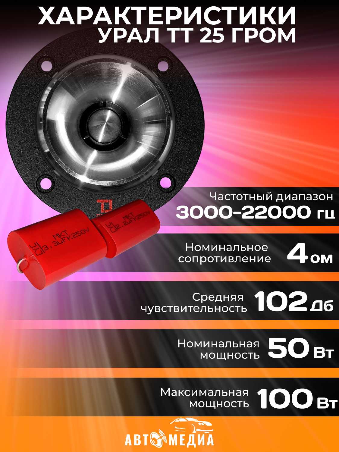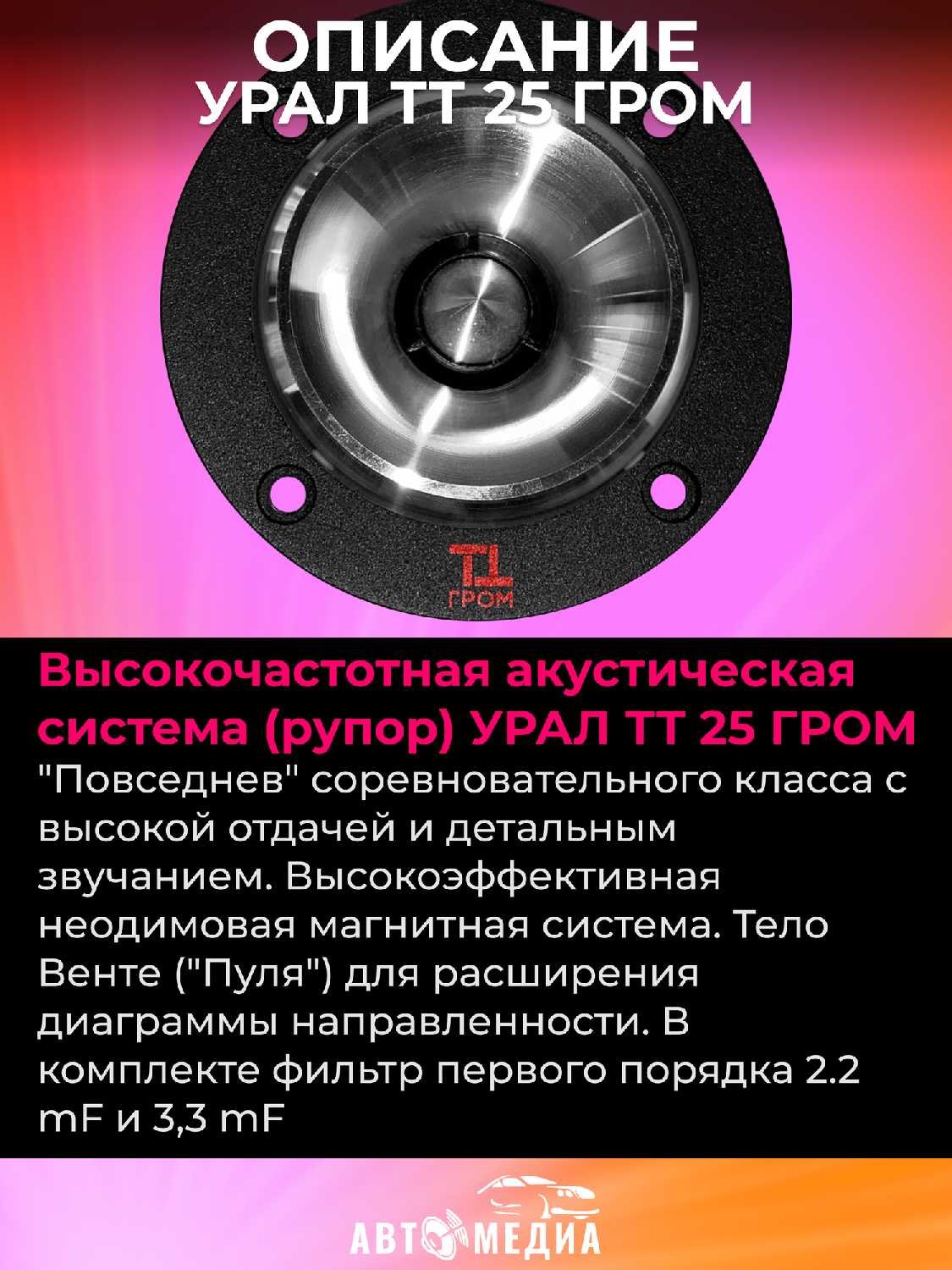 | Комплектация : | Акустика и фильтр первого порядка 2.2 mF и 3, 3 mF |