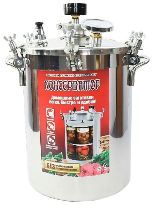 | Дополнительная информация : | манометр, термометр, клапан сброса изб. давления, нержавеющая сталь, ручки для переноски, опорные ножки |