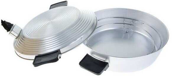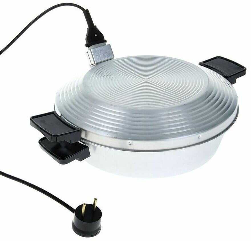 - + Чудо печь советская с 1979 года. Печёт пирожки отлично, очень быстро. Следить, чтобы верх не пригорел. Со второй порции 2 мин и надо открыть посмотреть. Чтобы мыть легче было, стелю вниз пергамент силиконизированный. Рядом ставьте подставку для крышки, когда снимаете, она раскаленная. Доска разделочная деревянная пригорит! Не используйте. Габариты большой сковороды, лёгкая, удобно с собой брать. Мясо по французски с сыром очень красиво выпекается. Рекомендую.