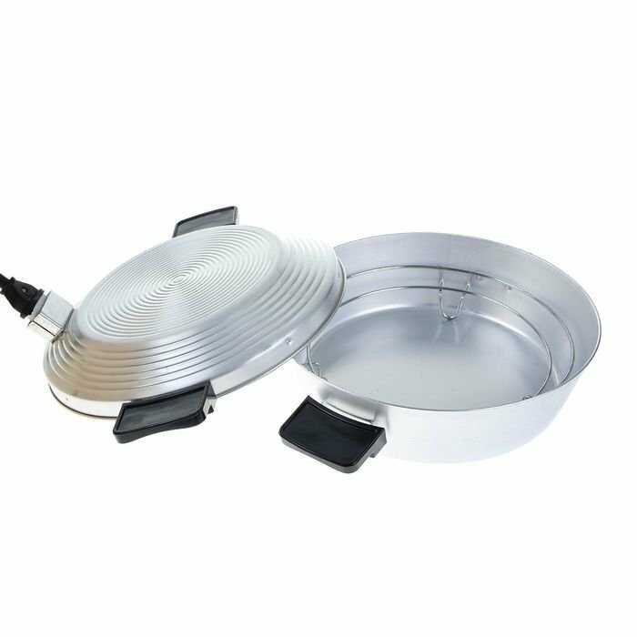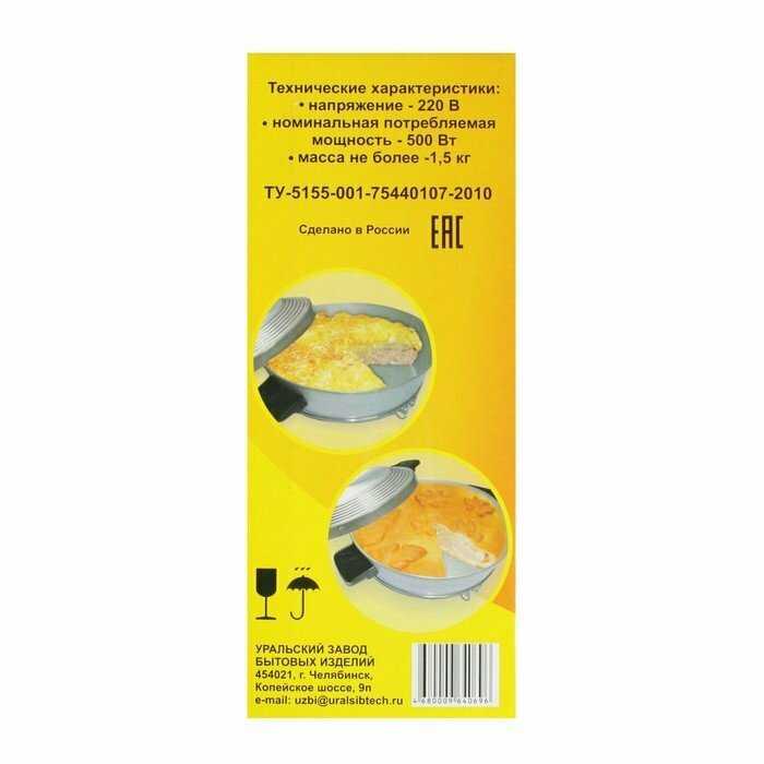 Еще из недостатков, очень тонкий метал. Ну прям не приемлимо для посуды тонкий, за ручки берешь склвороду и бортики гнутся, думаю с таким раскладом, ручки в скором времени отвалятся просто. Такое чувство, что посуда из фольги, пользрваться нужно предельно рмторожно. Очень расстроена, деньги выброшены зря. Еще выбирала между электро сковородой и этой чудо печью и полгадала. Очень расстроена. Оценка самая низкая.