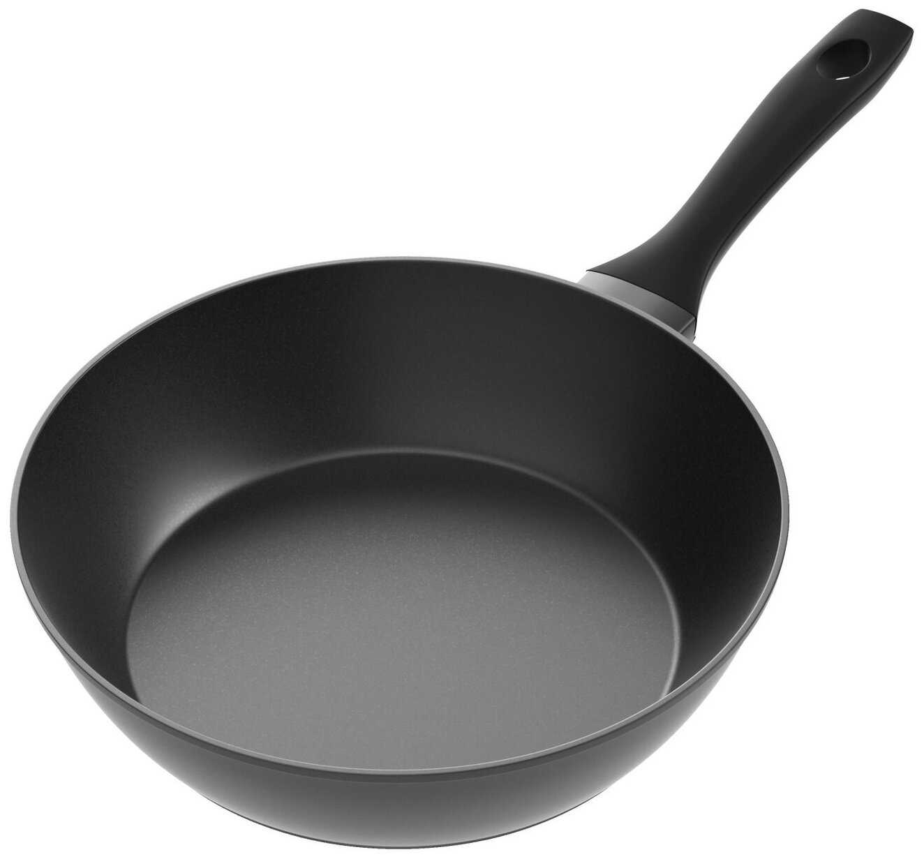 - + Хорошая сковорода, можно мыть в посудомойке. Достаточно глубокая и большая. Долго служит.