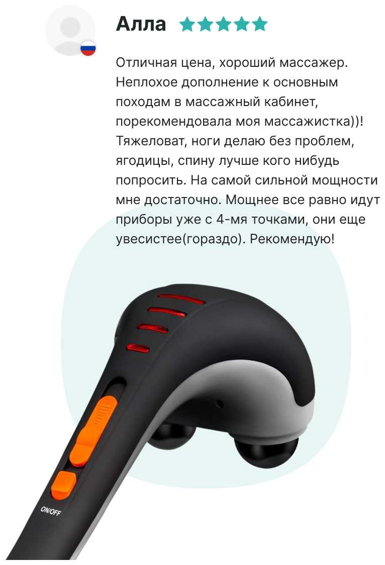 - - Самому себе спину не совсем удобно массировать. Тяжеловат массажер. Лучше, чтобы кто-то другой помог. В остальном нареканий никаких нет
