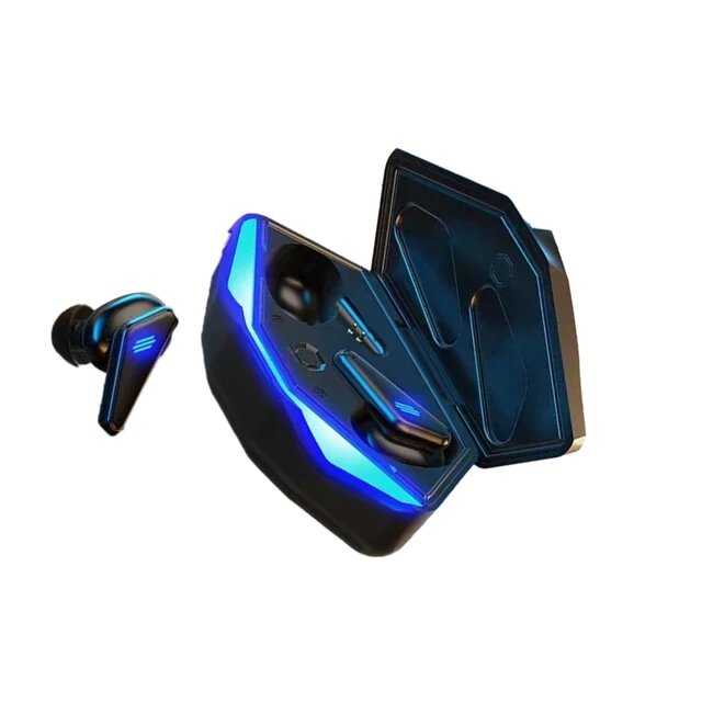 Кейс в форме звериной головы с подсветкой привлекателен визуально, но извлечение наушников затруднено из-за компактных размеров. Автоматическое подключение к устройству происходит сразу после извлечения. Вес кейса – около 40 г. -