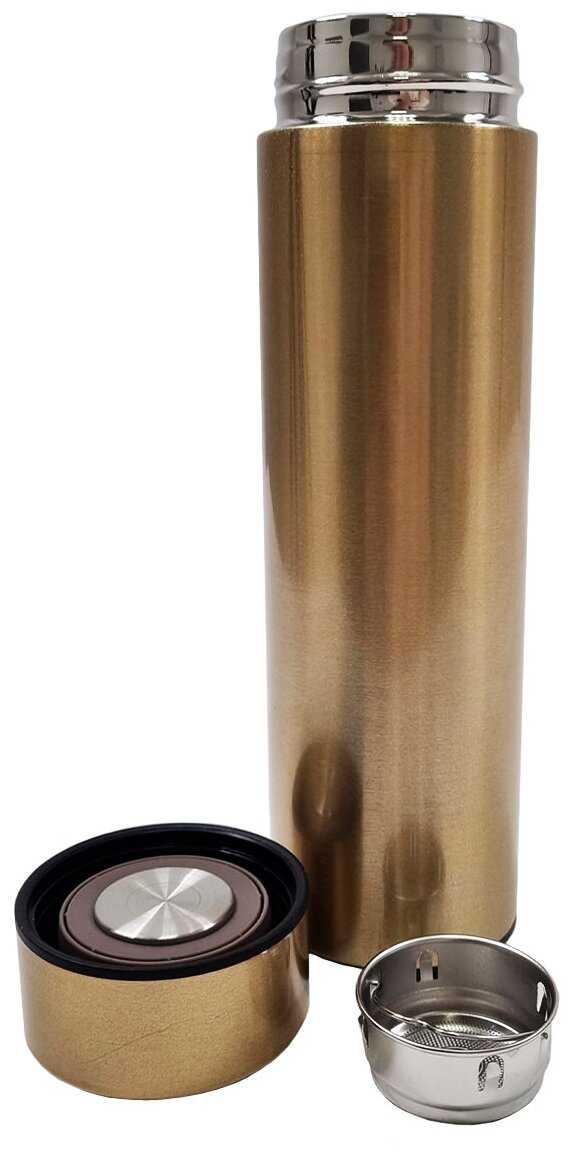 - Ситечко надежно фиксируется внутри колбы, не смещаясь при переноске или наклоне термоса, обеспечивая чистоту и удобство употребления напитка.