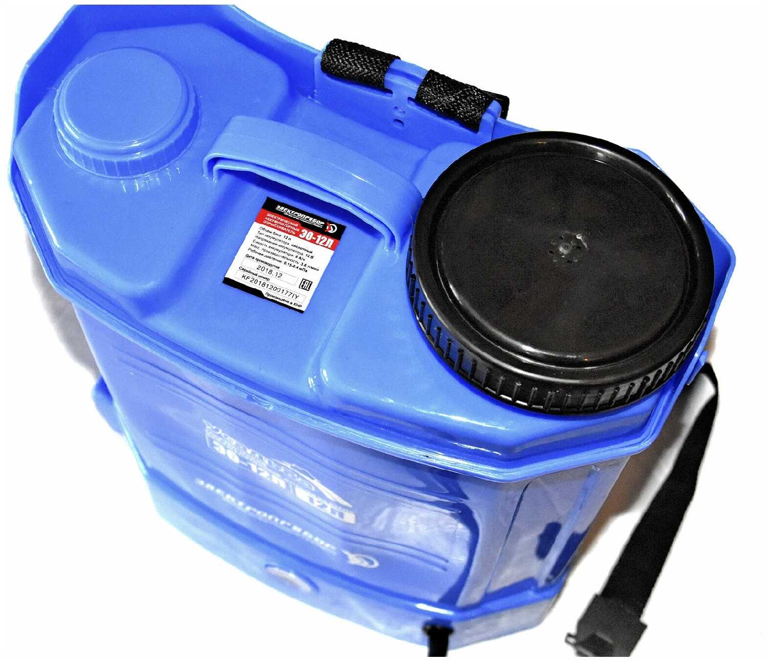 - Компактный бак объемом 10–12 л балансирует устройство, позволяя свободно двигаться без смещения центра тяжести во время работы.