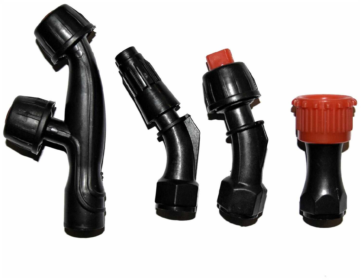 - Четыре насадки, включая угловую для туманного распыла, позволяют адаптировать струю под конкретные нужды, снижая расход растворов и повышая эффективность обработки от вредителей.