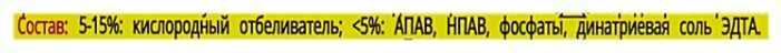| Состав : | АПАВ, НПАВ, фосфаты, динатриевая соль ЭДТА. |
