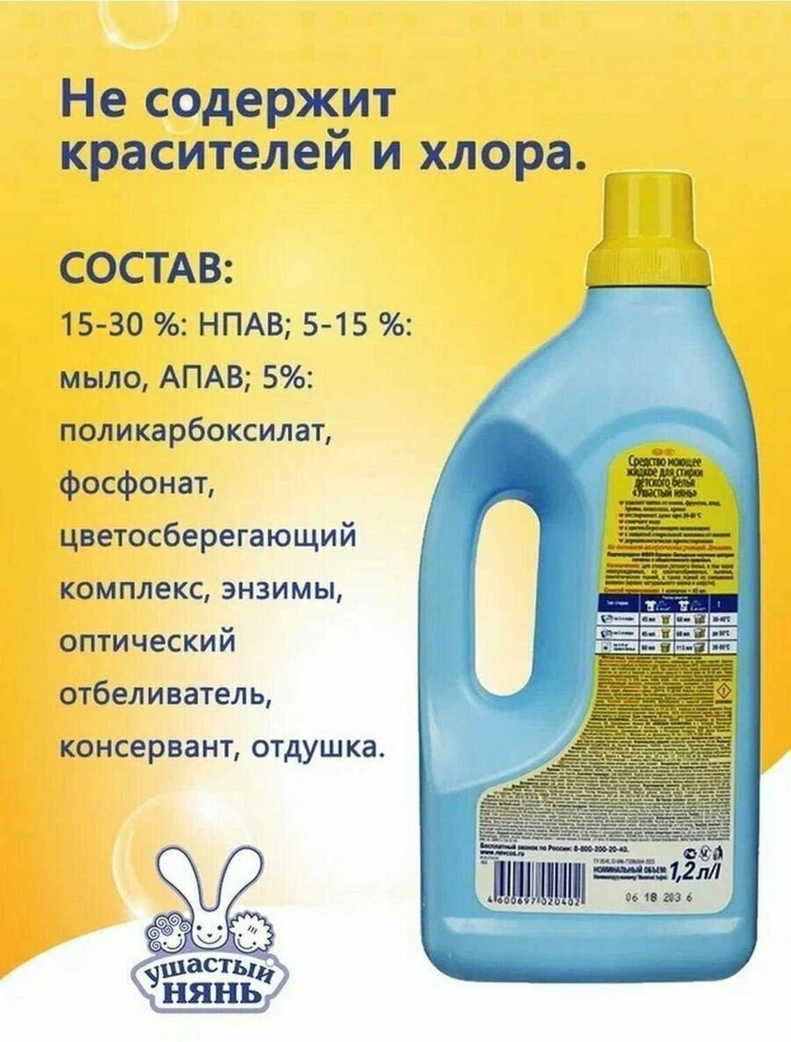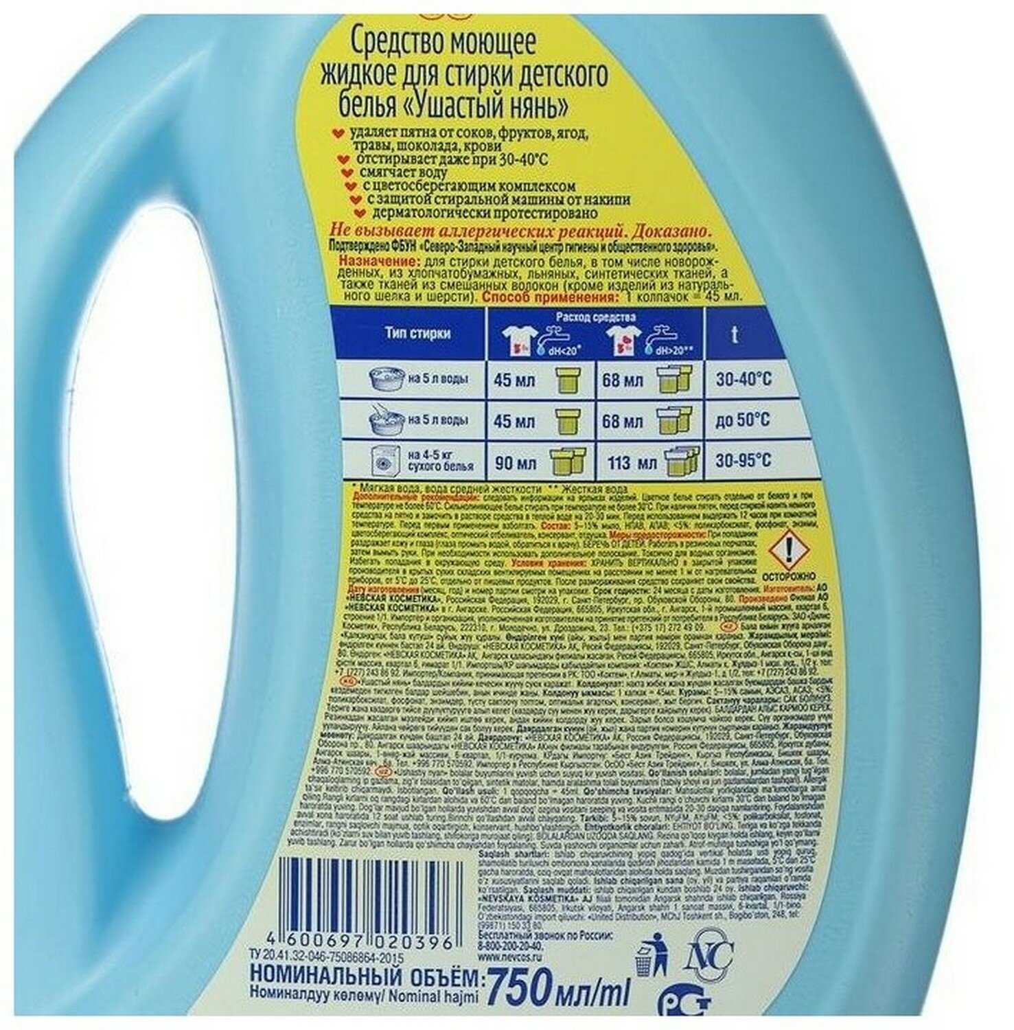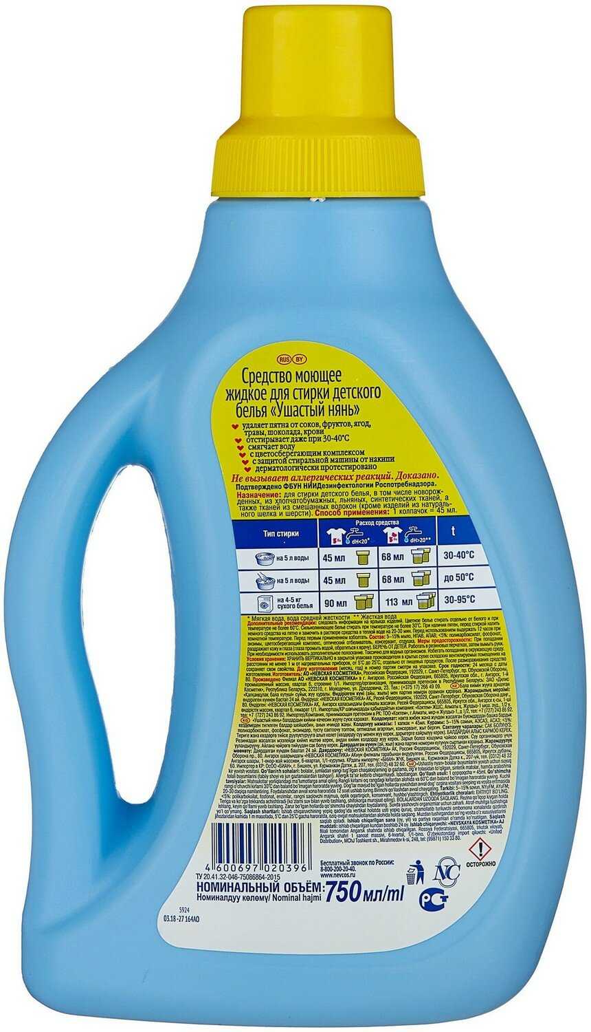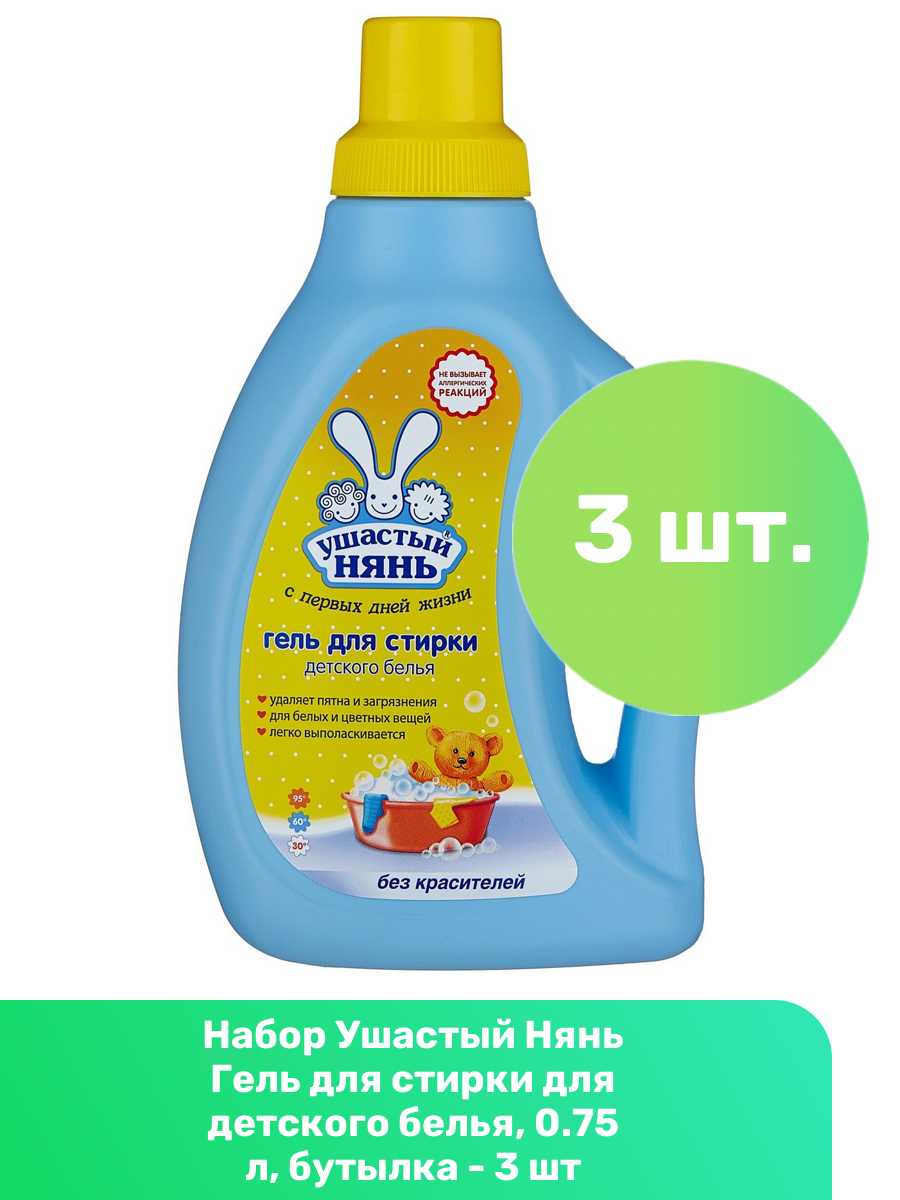 | Подробная комплектация : | Гель для стирки Ушастый Нянь для детского белья, 0.75 л, бутылка |