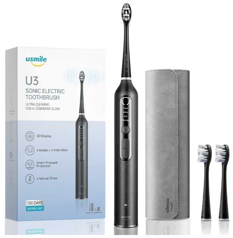 | Подробная комплектация : | Щетка Usmile U3 (ручка) - 1 шт Чистящие насадки - 2 шт Кабель для зарядки - 1 шт Дорожный кейс - 1 шт |