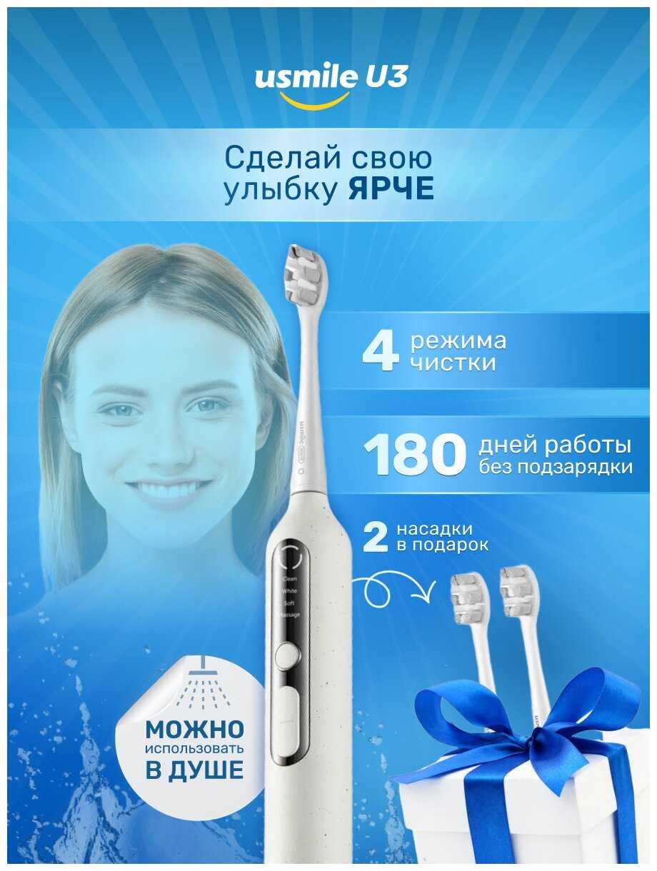 Покупал эту щетку взамен старой so white ex3, из-за отсутствия насадок. Прошло 3 месяца, поменял первую насадку и могу с уверенностью сказать, что Sonic U3 - отличная щетка. Режимов работы более, чем достаточно, на мой взгляд. Насадку сменил через три месяца, как рекомендуют, но фактически можно было бы еще юзать. Щетку еще не заряжал с момента покупки.
